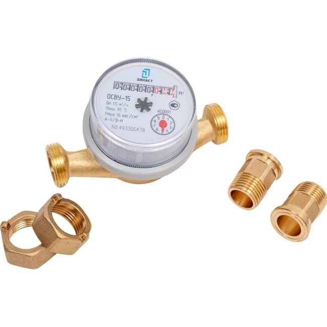 Счётчик г/в и х/в крыльчатый одноструйный латунный корпус Ду 15 Ру16 90С L=110мм Декаст